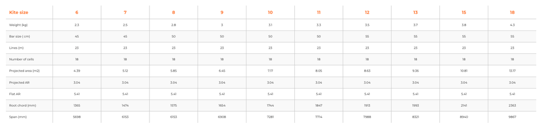 Wir haben die Materialien je nach Kite-Größe angepasst, um über die gesamte Range die bestmögliche Performance herauszuholen: