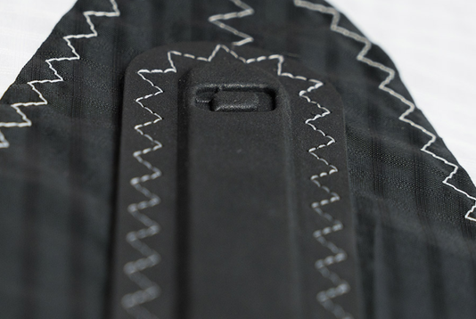 Die Konstruktion mit überlappenden Flachnähten verbessert die Kontrolle über das Tuch und sorgt insgesamt für ein saubereres Profil.