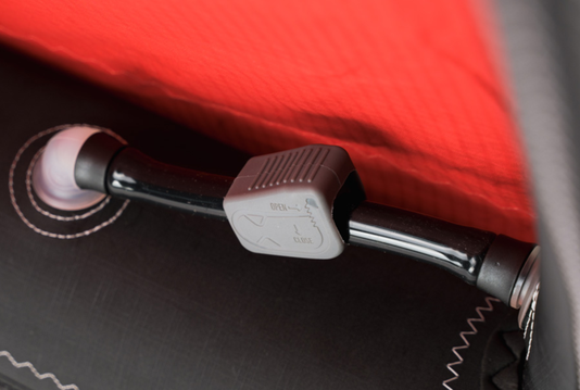 Das Fast Flow One-Pump-System macht Auf- und Abbau schnell und einfach. Es bietet eine Einzelpunkt-Inflation/Deflation und einen hohen Luftdurchfluss zwischen Struts und Fronttube, inklusive Clips, um die Schläuche abzudichten und unerwünschten Luftverlust bei Beschädigungen zu verhindern.